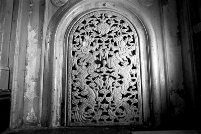 北青报记者扈从王嵬,从洋房南门插足室内,后光蓦然变得幽暗,脚踏在老旧的木地板上会发出深千里的回响。王嵬轻推开东侧一扇老旧的木门,步入建筑东南角的房间,他掀开北墙上的塑料布,一座嵌墙壁炉让东说念主目下一亮,而最引东说念主注指标,是壁炉防火屏中的“双龙戏珠”纹饰。